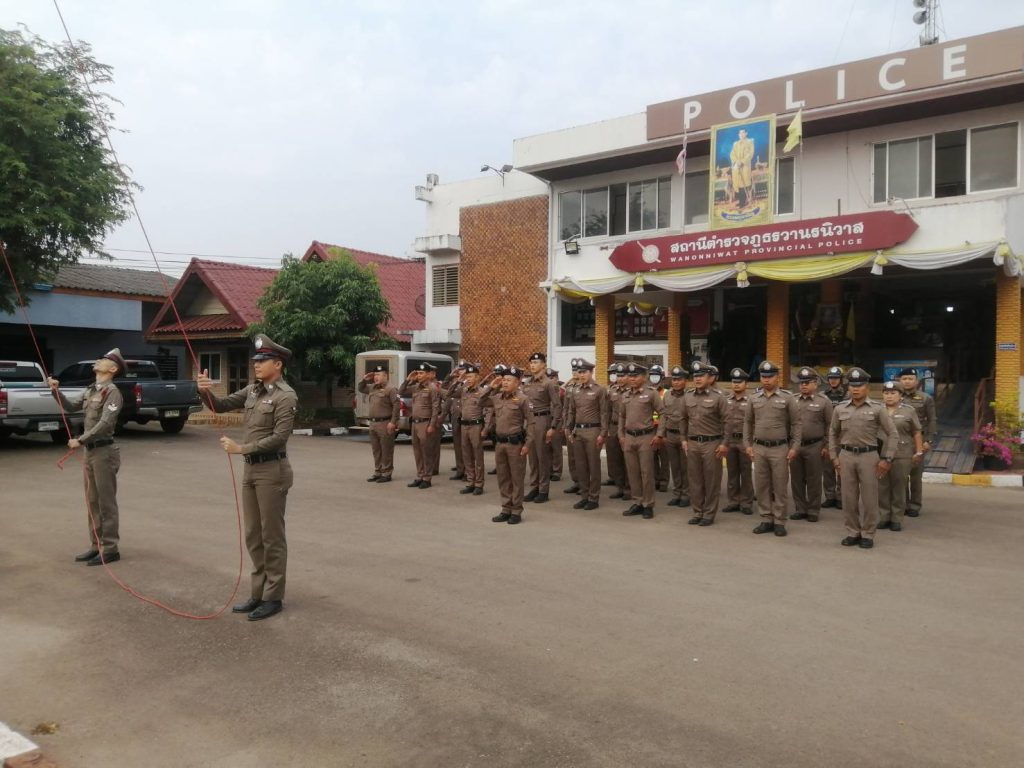 พร้อมข้าราชการตำรวจในสังกัด เคารพธงชาติ สวดมนต์ไหว้พระ กล่าวบทปลงใจ กล่าวคำสัตย์ปฏิญาณ กล่าวอุดมคติตำรวจ ท่องจำพระนามาภิไธยพระบาทสมเด็จพระเจ้าอยู่หัวฯ และพระบรมวงศานุวงศ์ และตรวจความพร้อมเครื่องแต่งกายและทรงผมและประชุมถ่ายทอดนโยบาย ข้อราชการ ข้อสั่งการของผู้บังคับบัญชา