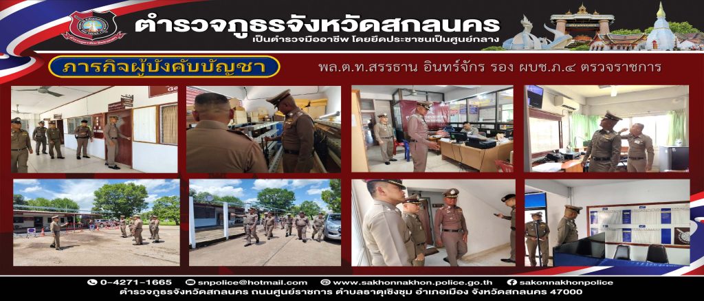 ตรวจราชการ 2 กรกฎาคม 2568 โดย wanonniwas_wpdb / ไม่มีหมวดหมู่ วันที่ 16 มิ.ย. 2568 เวลา 13.00 น. พล.ต.ต.สรรธาน อินทรจักร์ รอง ผบช.ภ.4 ตรวจราชการ ติดตามข้อสั่งการและข้อแนะนำจากการตรวจราชการครั้ง โดยมี พ.ต.อ.พงศ์พชร์ แจ้งหมื่นไวย์ รอง ผบก ภ.จว.สกลนคร และ พ.ต.อ.พินิจ ประสิทธิ์เขตกิจ ผกก.สภ.วานรนิวาส ให้การต้อนรับ FacebookFacebookLINELine